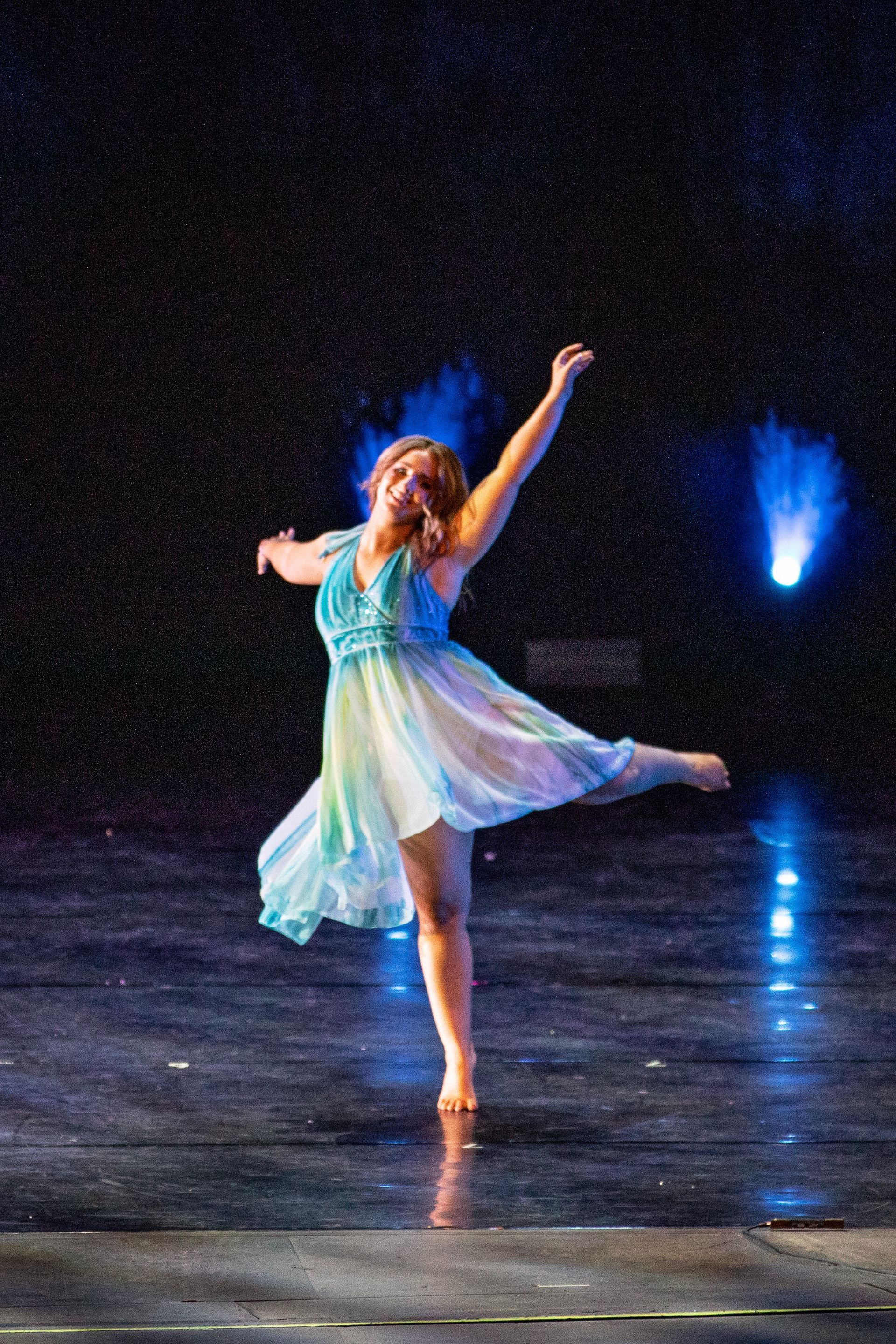 Lyrical dance fuses multiple styles and focuses on expressive movement that often tells a story. Dancers learn choreography that encourages emotional connection, fluidity, and musical interpretation. Improvisation is also incorporated, giving dancers space to explore their own movement and creativity.