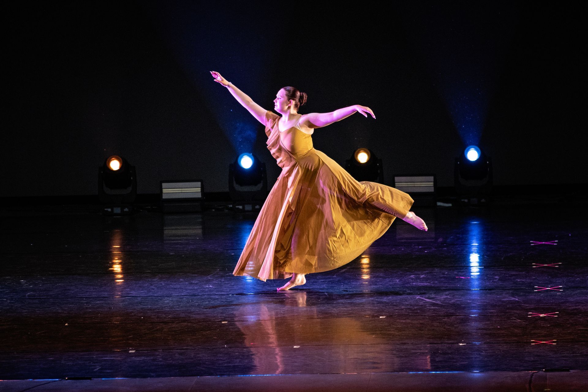 Contemporary dance blends multiple dance genres and challenges dancers to think beyond traditional technique. This style emphasizes body awareness, breath, unique shapes, dynamic transitions, and emotional expression. Contemporary dancers learn to move in and out of the floor, shift weight smoothly, and connect intention to movement.